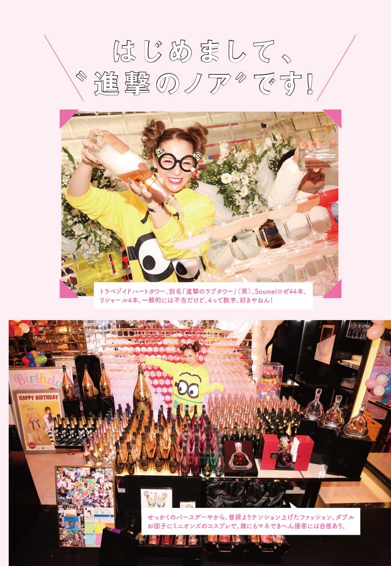 進撃のノアさんは「行き場を失っていたときにキャバ嬢を扱ったドキュメンタリー番組が目に入って、これだ! と思っちゃったんですね。キラキラした世界がたまらなく魅力的でした」と振り返っています。